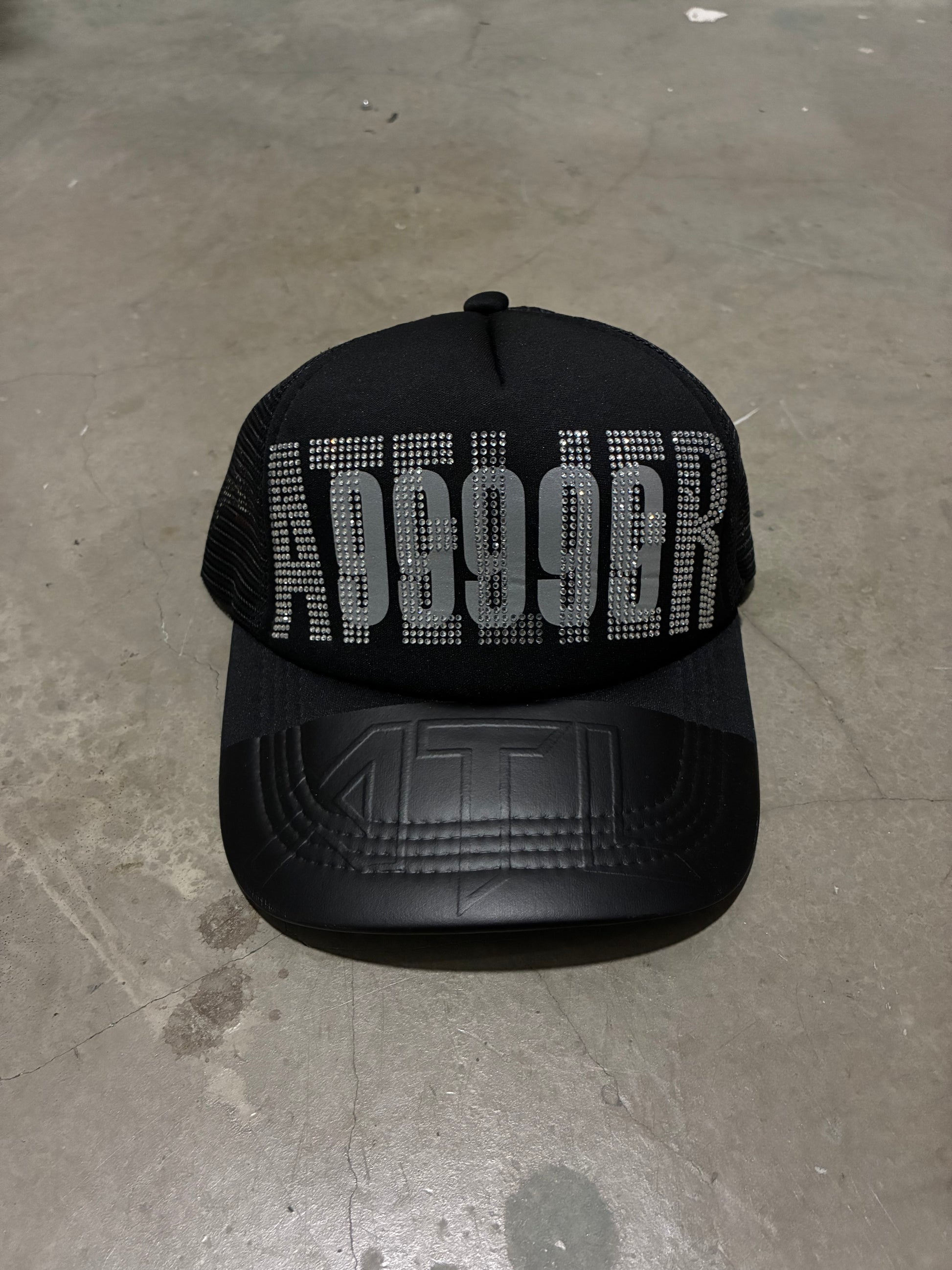 Técnicas mixtas en su creación, material reflectante en la copa y encima aplicación de cristales, aplicación de textura relieve en visera.