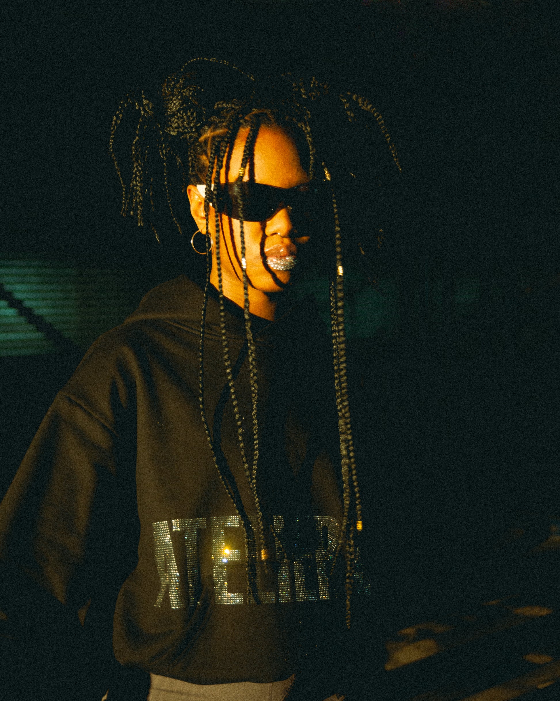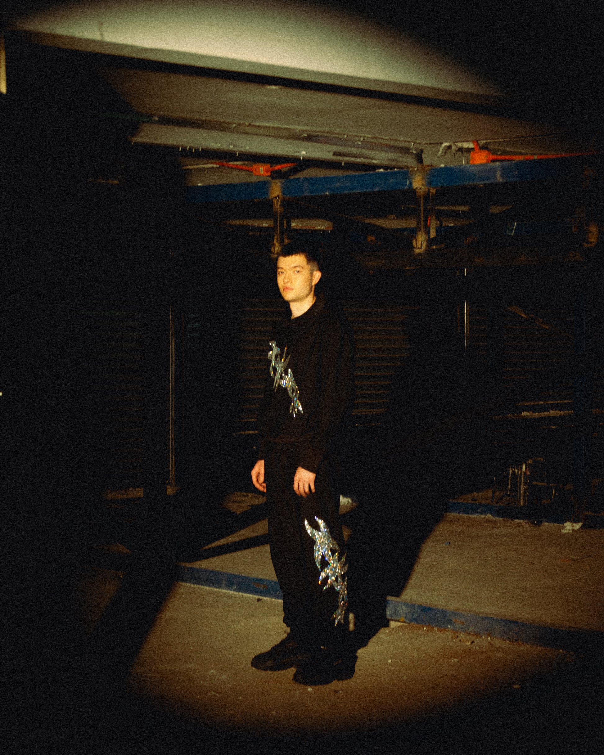 POLERON HELVÉTICA REVERSIBLE atelier99, FABRICADO CON DOS CAPAS DE TELA Y TEXTURAS, POR EL LADO “A” PRESENTA UNA TEXTURA SUAVE Y LISA CON TEXTO “ATELIER 99” APLICADO EN CRISTALES CON TIPOGRAFÍA HELVÉTICA. POR EL LADO “B” PRESENTA TRIBAL BIGSTARCROMO APLICADO EN PEDRERÍA, CRUZANDO TODA LA CARA DELANTERA DEL POLERON, ESTO SUMADO A UNA TEXTURA RUGOSA Y COSTURAS A LA VISTA, GENERANDO LA VISUAL DE QUE LA PRENDA ESTÁ SIENDO LLEVADA POR EL REVÉS.
